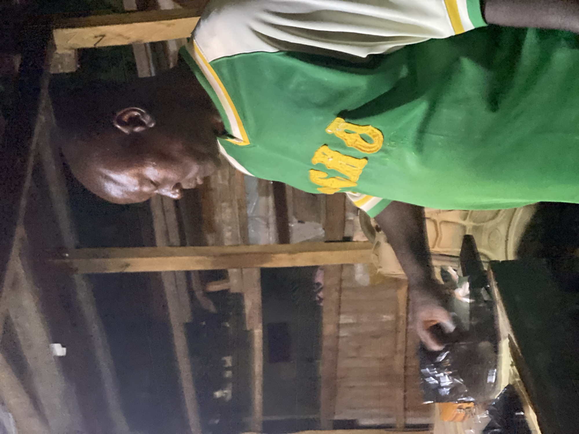 An adult male, with dark skin and a bald head, is depicted indoors in Maigizo, Nigeria