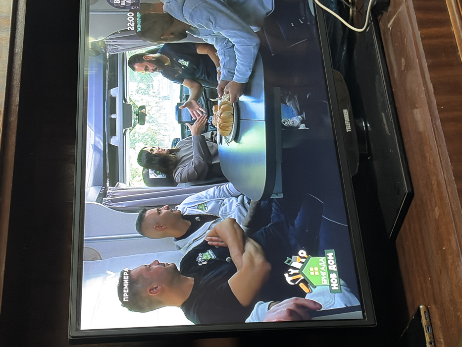 This image captures a Telefunken television displaying a program, located in Sarnevo, Bulgaria