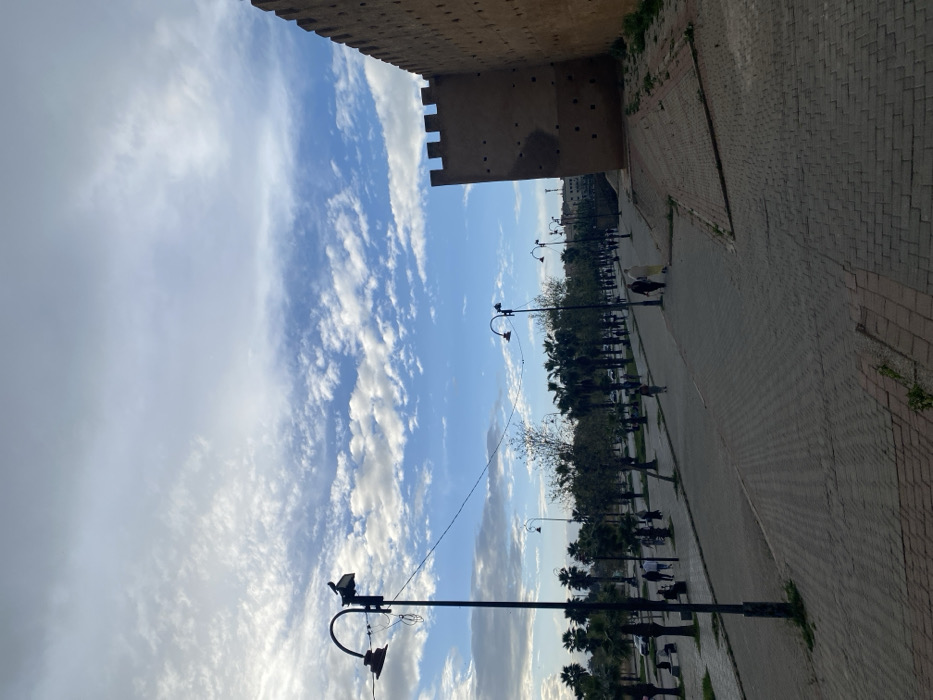 - "The scene depicts a wide outdoor area within Mechouar Fes Jdid, Morocco, under a partially cloudy blue sky" by FM-ZyJNa2, licensed under CC BY 4.0