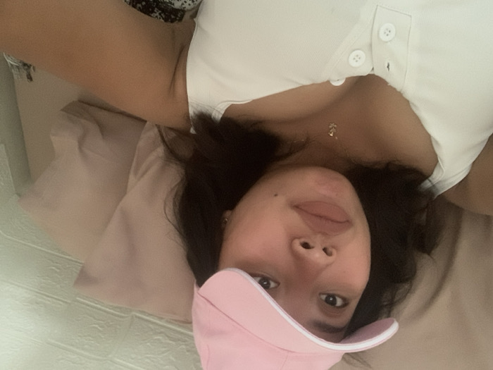 - "A woman with dark hair and a light pink cap is lying down, facing the camera at an angle" by FM-dtoM83, licensed under CC BY 4.0