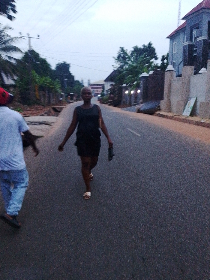- "A woman in a black dress and white sandals walks down a paved road holding shoes in her right hand" by FM-3miR63, licensed under CC BY 4.0