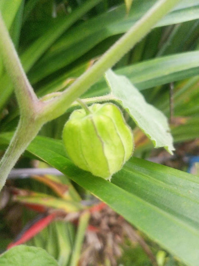 - "The image presents a close-up view of a light green, lantern-shaped calyx, approximately 2-3 centimeters in diameter, which encloses an immature fruit, likely a Physalis species" by FM-tYp8y2, licensed under CC BY 4.0