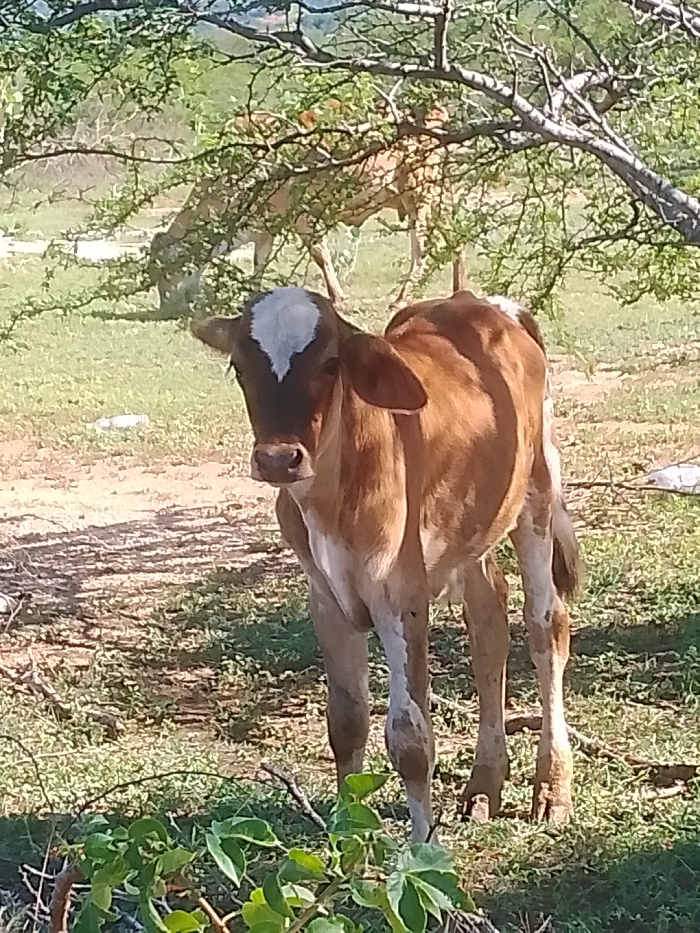 - "A light brown calf with distinct white markings stands in a field located in Altagracia, Venezuela" by FM-ymGPj1, licensed under CC BY 4.0