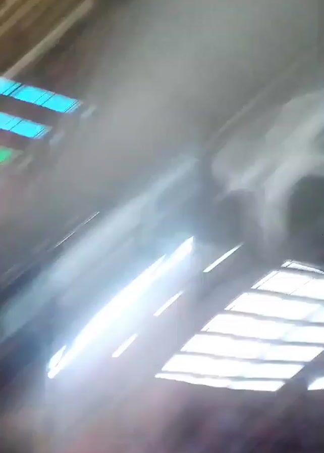 set of bongos in a room, likely indoors. The bongos are mounted on stands and appear to be newly packaged or protected with plastic wrapping. The background is somewhat blurry, but it seems to be an event or party setting based on the lighting and overall ambience. The camera movement is shaky and slightly out of focus.