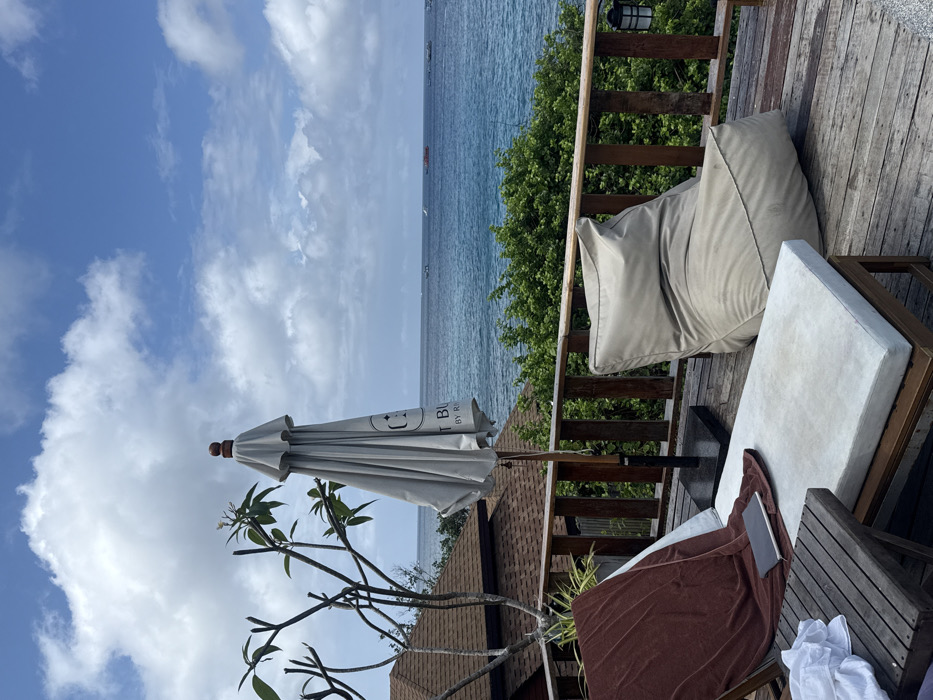 - "The image displays an unoccupied outdoor wooden deck overlooking the ocean in Ko Tao, Thailand, under a partly cloudy blue sky" by FM-yKgTu2, licensed under CC BY 4.0