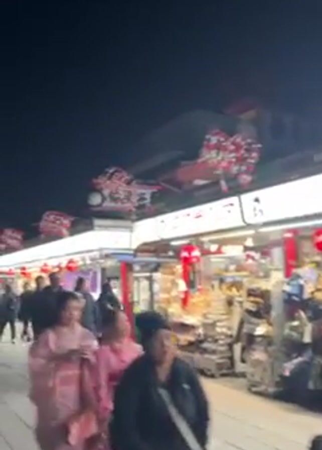 - "At night, a crowded pedestrian street is lined with shops lit with white lights that appear to sell gifts and souvenirs" by FM-IXb3V2, licensed under CC BY 4.0