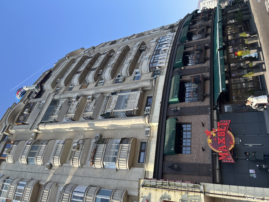 - "The image depicts the facade of a multi-story building located at Strada Nerva Traian 12-14 in Bucharest, Romania, under a clear blue sky" by FM-nazRh2, licensed under CC BY 4.0