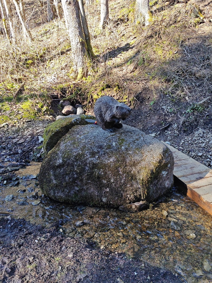 - "An outdoor scene in Lopukhinka, Russia, depicts a dark grey statue of a beaver positioned centrally on a large, moss-covered boulder" by FM-YnLiU2, licensed under CC BY 4.0