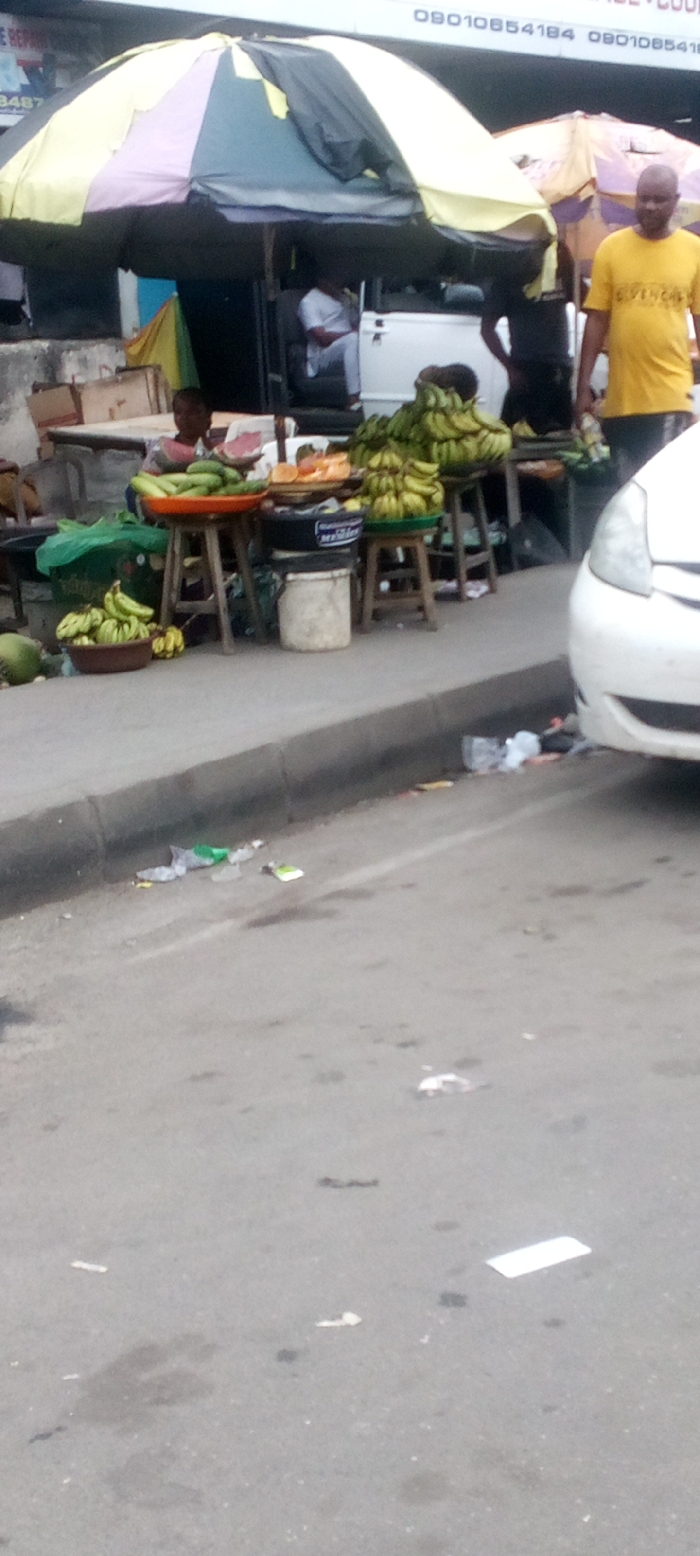street vendor selling fruit under an umbrella in Port Harcourt, Rivers, Nigeria