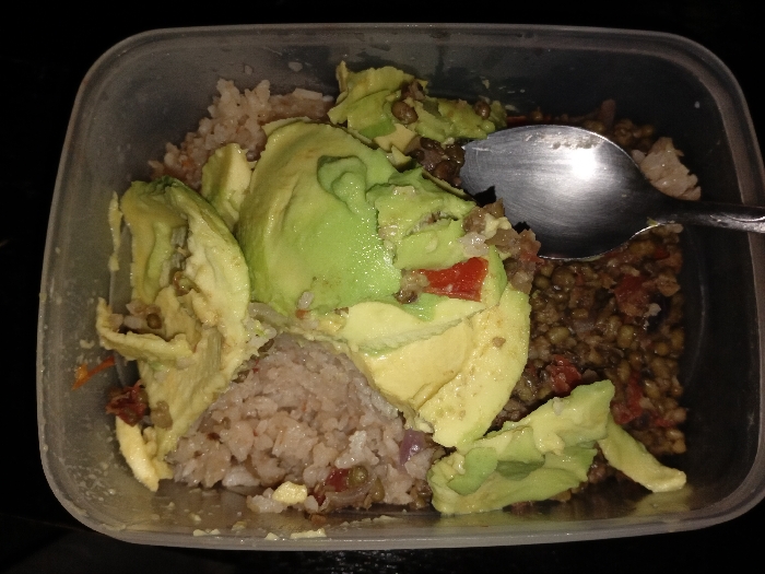 - "A plastic container holds a meal consisting of brown rice, lentils, and sliced avocado" by FM-FCCQg2, licensed under CC BY 4.0