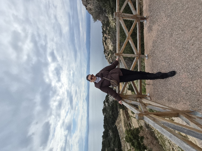 - "A female subject stands centrally on a reddish-brown gravel observation deck located in the Municipal Unit of Loutraki - Perachora, Greece" by FM-jvnrw2, licensed under CC BY 4.0