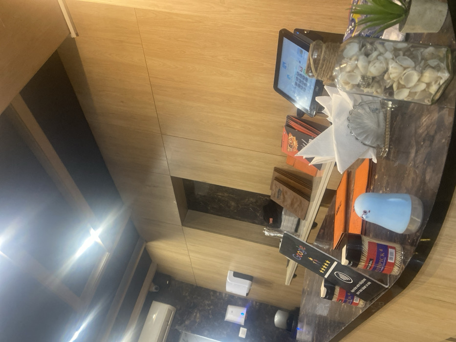 An interior view depicts a counter area within a commercial establishment in Monastir, Tunisia