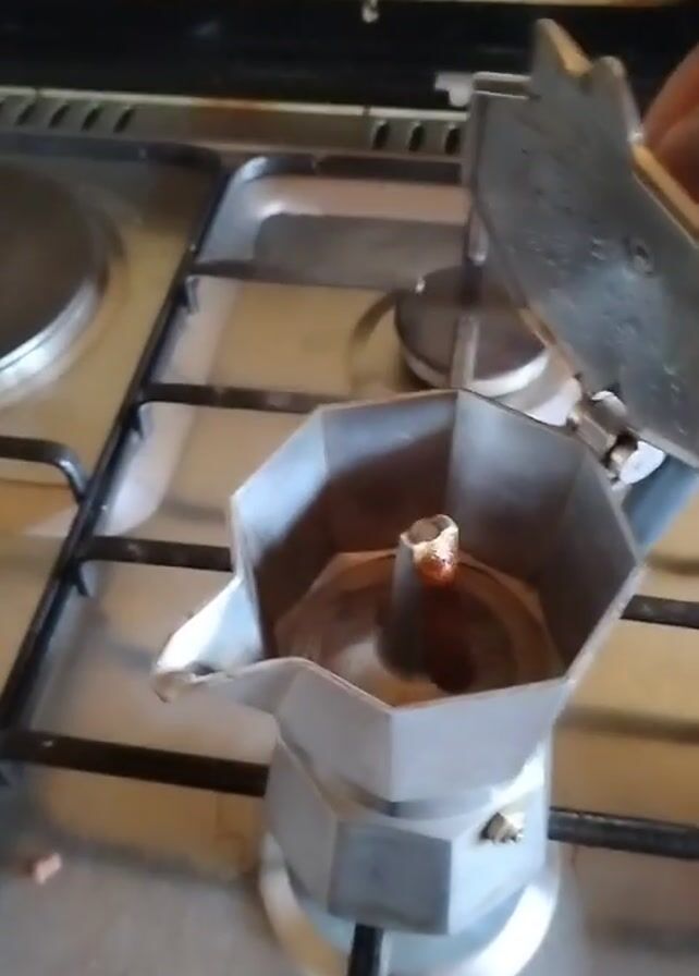 - "person opening a Moka pot sitting on a stainless steel gas stovetop" by FM-EjnL92, licensed under CC BY 4.0
