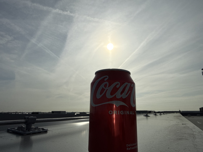 - "An outdoor, wide-angle image depicts a single red Coca-Cola Original can positioned upright on a flat, light-grey surface in the foreground, slightly to the right of the central axis" by FM-WQ3Oy2, licensed under CC BY 4.0