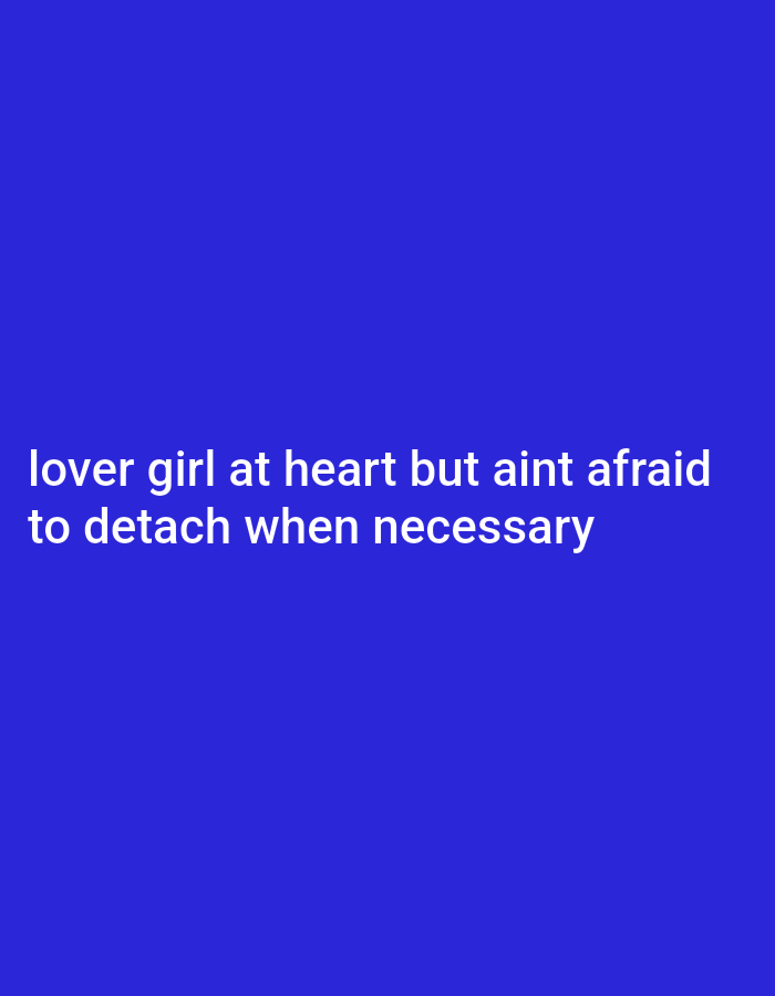 A royal blue background displays white text centered horizontally and near the bottom. The text reads, "lover girl at heart but aint afraid to detach when necessary." The font is simple and easily readable. The overall aesthetic is minimalist and straightforward, focusing on the message conveyed by the text.