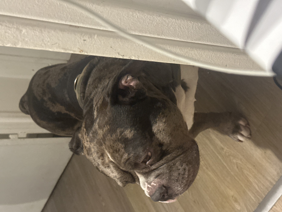 - "The image depicts an American Bully-type dog in an indoor setting" by FM-lS6eB2, licensed under CC BY 4.0