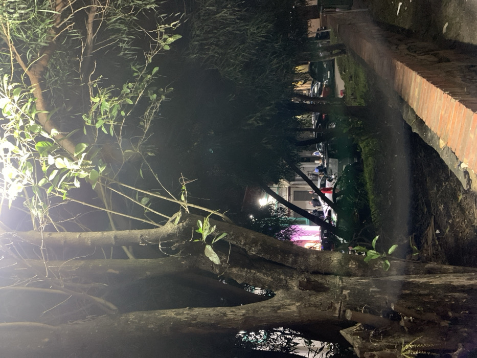 - "Night scene featuring a large tree branch in the foreground, its rough bark and sparse green leaves visible" by FM-Gn7EC2, licensed under CC BY 4.0