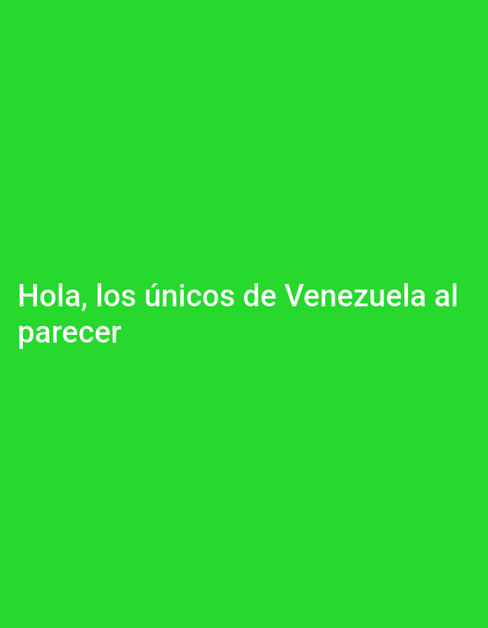 - "The image is a solid green background with the text "Hola, los únicos de Venezuela al parecer" in white, centered on the bottom of the image" by FM-pBlrE3, licensed under CC BY 4.0