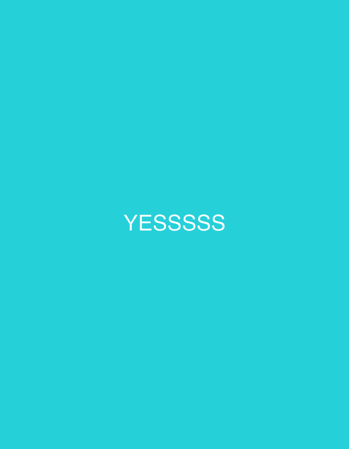 The image displays a solid, uniform turquoise background. Centrally located on this background are the capital letters "YESSSSSS" rendered in white. No other subjects, objects, people, actions, interactions, or environmental details are present. The image does not depict any physical location, including the city of Chengdu, China.