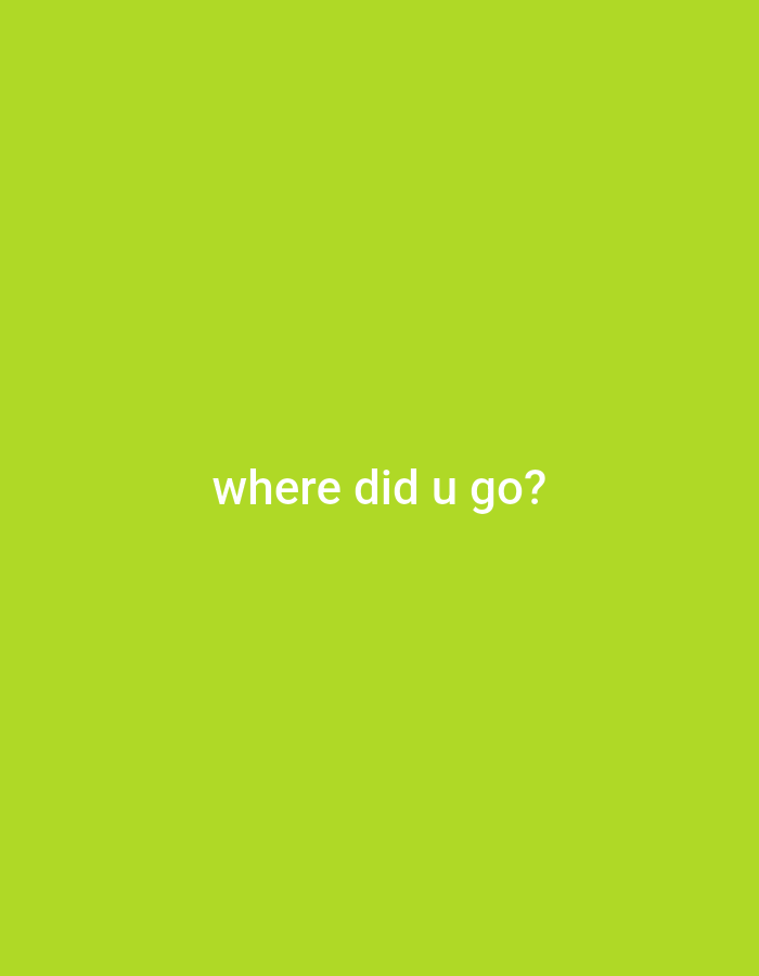 The image is a solid green background with the phrase "where did u go?" written in white text in the center