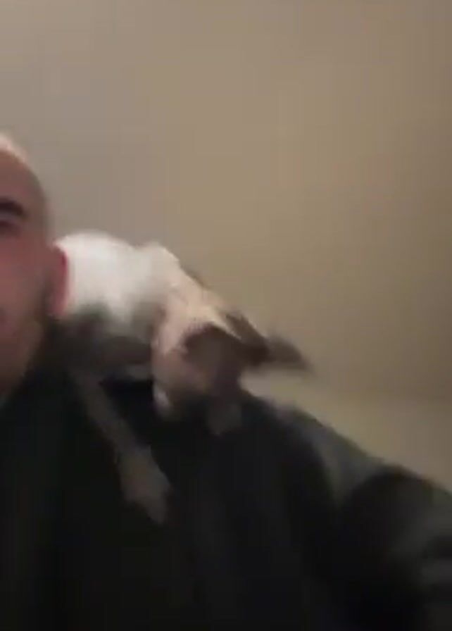 The video features a bald man wearing a black hoodie with a Sphynx cat perched on his shoulder