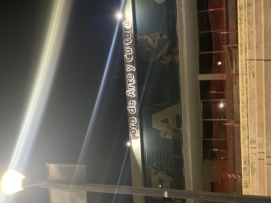 - "A building with a sign that reads "Foro de Arte y Cultura" is illuminated by lights at night" by FM-PK8Xi2, licensed under CC BY 4.0