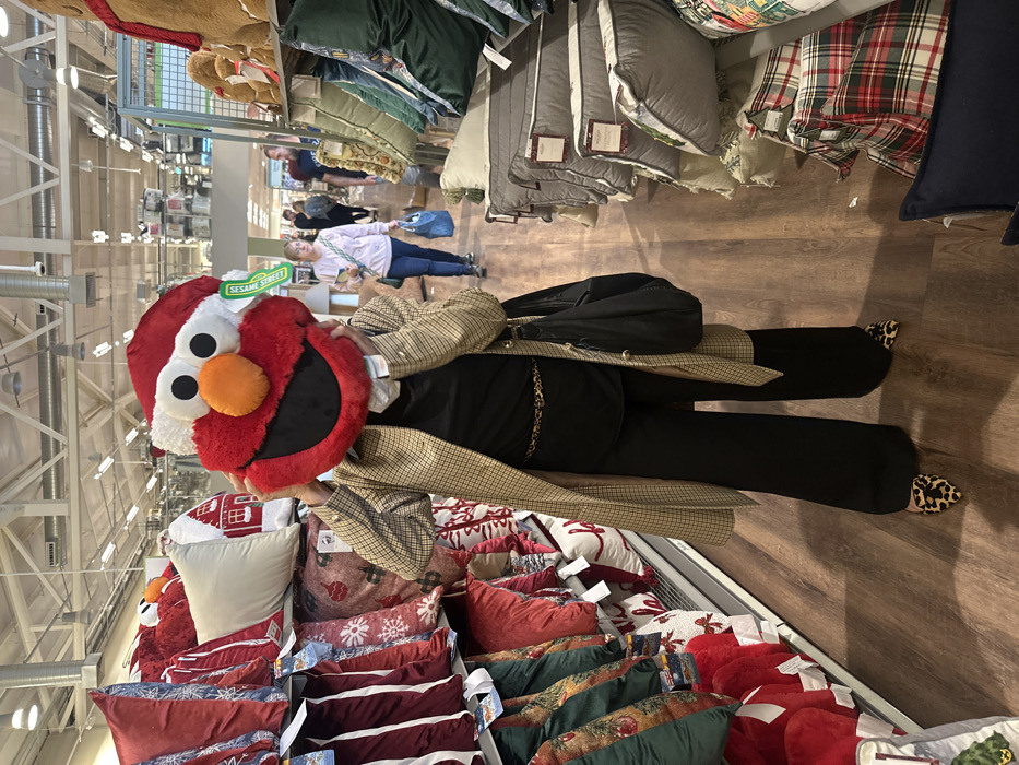 - "A person is centrally positioned in a retail store aisle, holding a large red Elmo plush with a red and white Santa hat directly in front of their face, obscuring it" by FM-13LyK2, licensed under CC BY 4.0