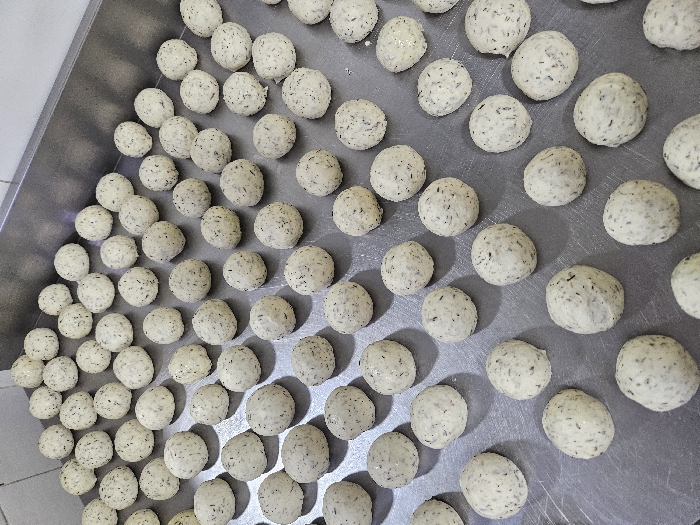 - "This image depicts a close-up, high-angle view of approximately 150 small, spherical, light-colored food items, likely in a commercial kitchen setting in Marrakesh, Morocco" by FM-iikl52, licensed under CC BY 4.0