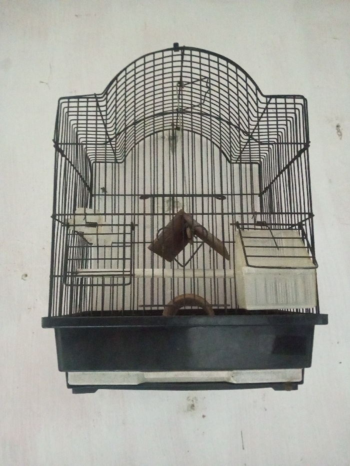 - "In Balapur, India, a black wire birdcage with an arched top and a black plastic base is affixed to an off-white wall" by FM-tPHVz1, licensed under CC BY 4.0