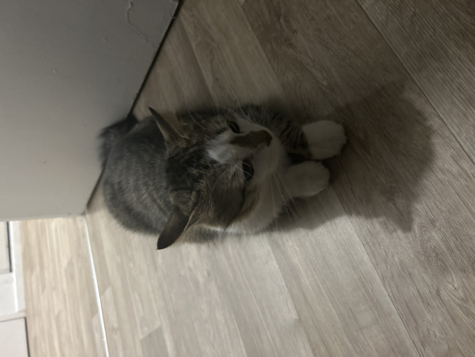 - "The image displays a domestic cat resting indoors on a light-colored wooden plank floor in what is identified as Metz, France" by FM-KvJN53, licensed under CC BY 4.0