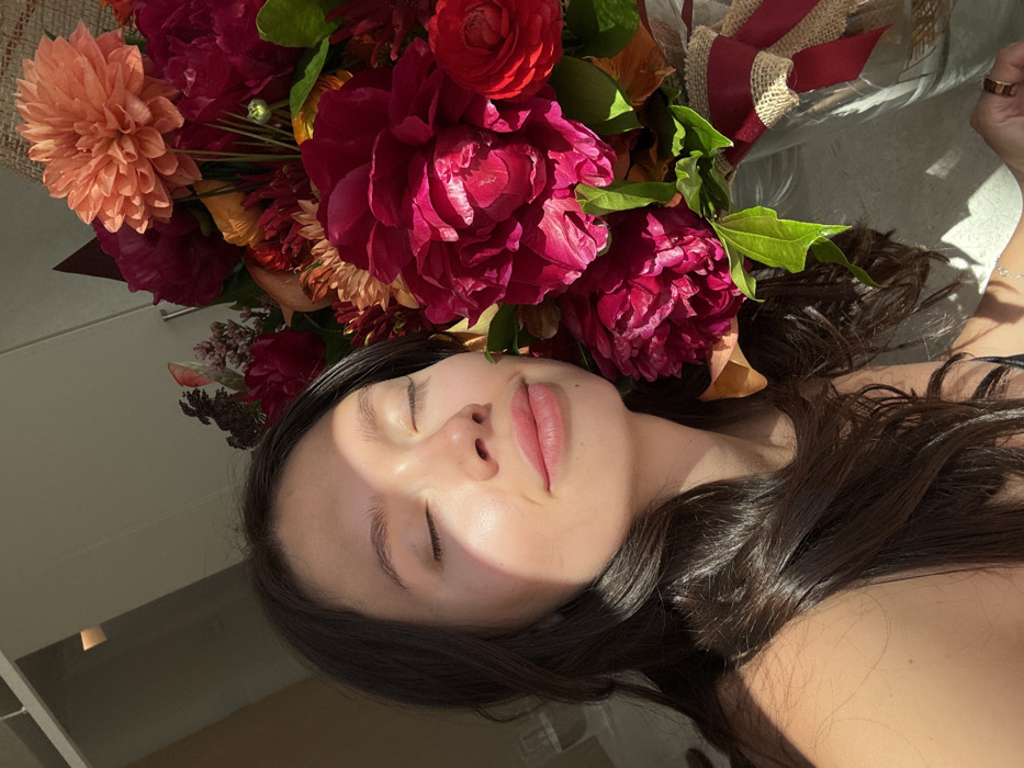 - "A medium close-up shot captures a young adult female and a large floral bouquet in an indoor setting in Eilat, Israel" by FM-KEr2A3, licensed under CC BY 4.0