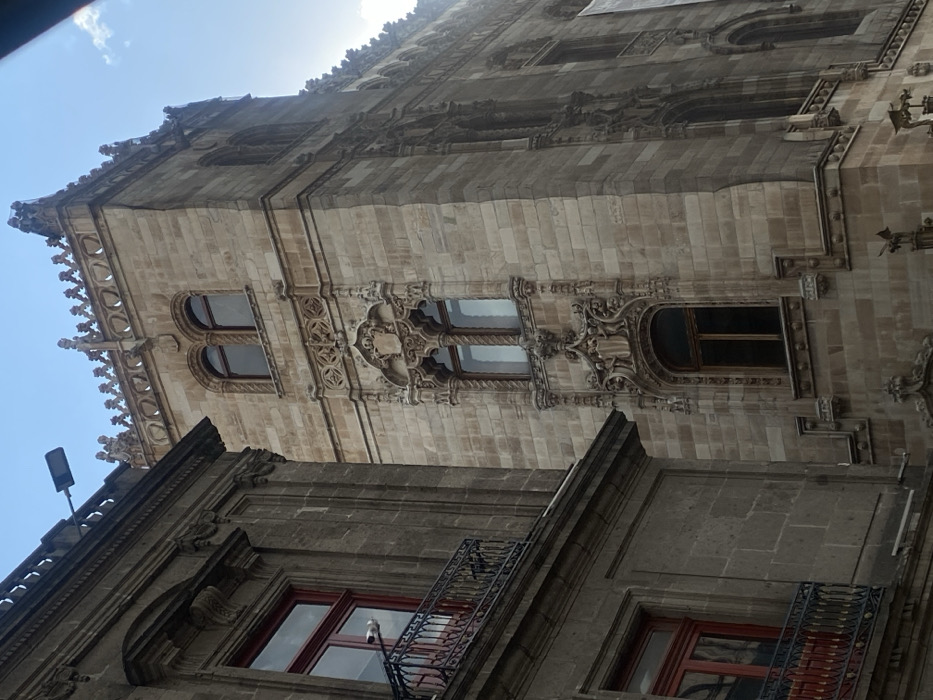- "The image displays an architectural detail view of two historic buildings in the Historic Center of Mexico City, Mexico, under a partially cloudy blue sky" by FM-Cwxsv2, licensed under CC BY 4.0