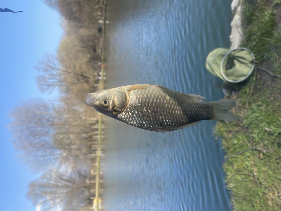 - "A freshly caught fish, likely a crucian carp, is suspended vertically by a fishing line, centered in the frame" by FM-N04Hc2, licensed under CC BY 4.0