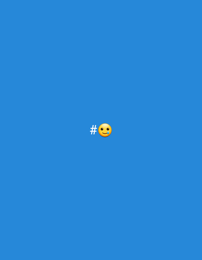 A blue background with a hashtag symbol followed by a slightly smiling face emoji near the center of the image