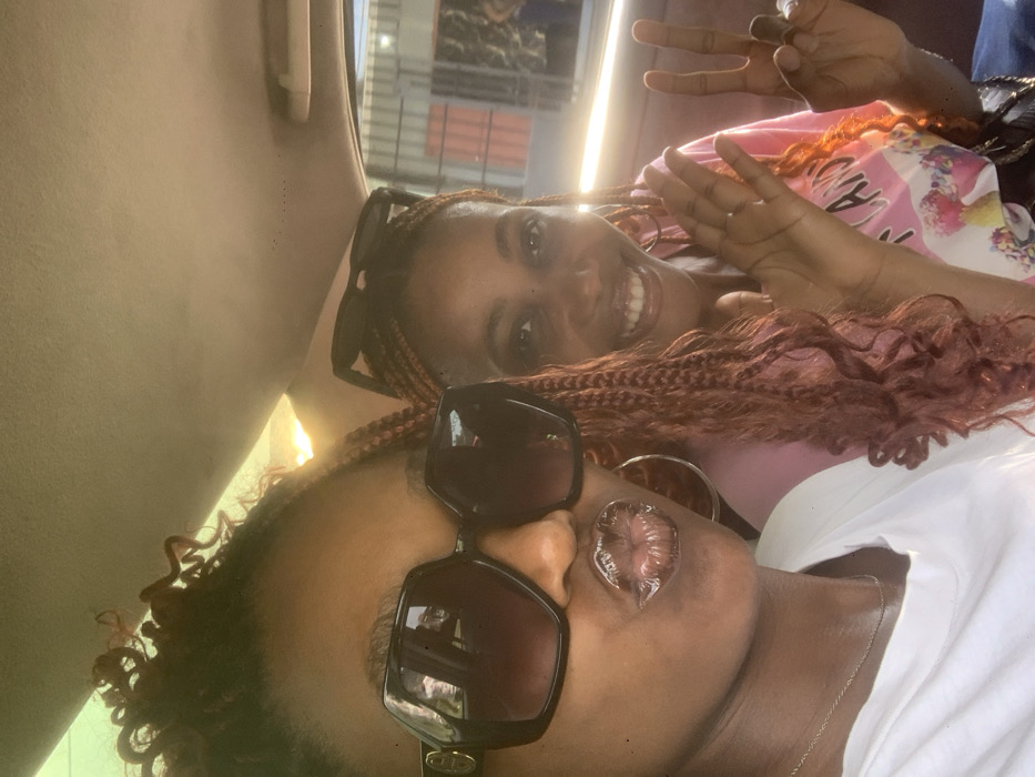The image displays two adult females inside a vehicle located in Anantigha, Nigeria
