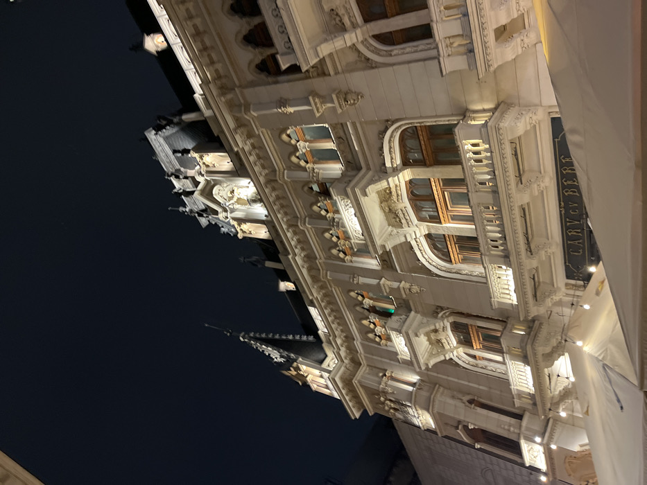 - "The image displays the exterior of the Caru' cu Bere building in Bucharest, Romania, at night" by FM-XfSux1, licensed under CC BY 4.0