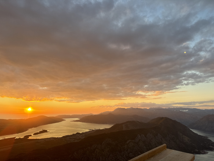 - "The image presents a panoramic landscape view at sunset, observed from a high vantage point within the city of Žanjev Do, Montenegro, overlooking the Bay of Kotor" by FM-JxfQU2, licensed under CC BY 4.0