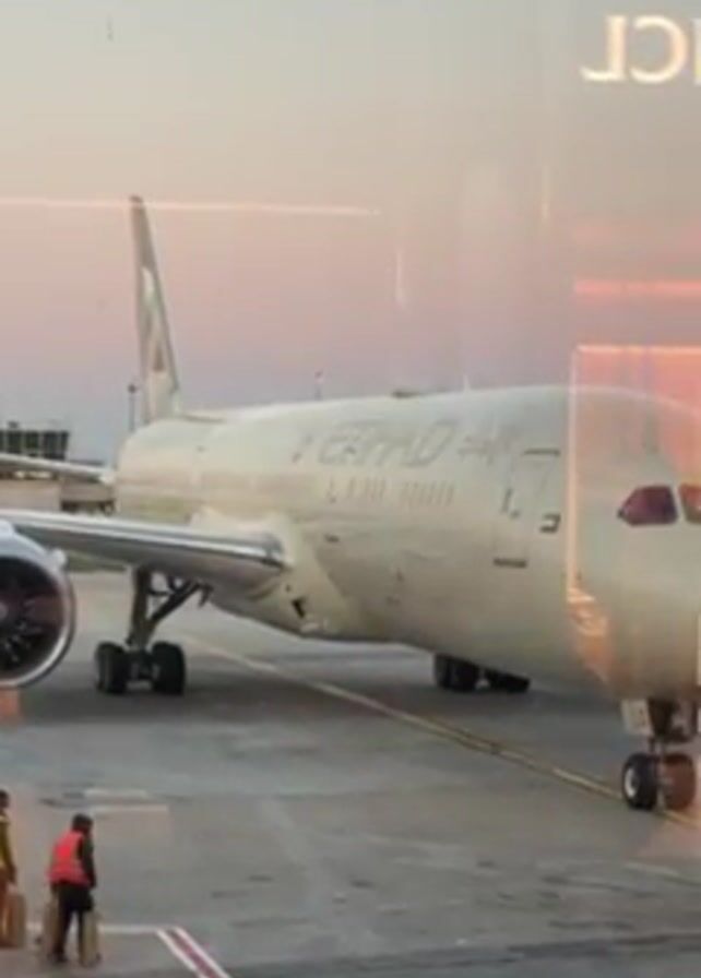 - "n Etihad Airways airplane parked on a tarmac, viewed through a glass window" by FM-85lNF2, licensed under CC BY 4.0