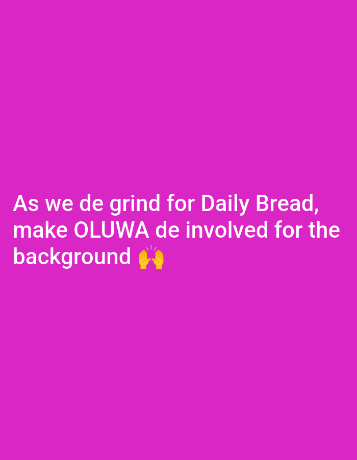 The image displays a solid fuchsia background. Centrally positioned in the lower half of the frame, white sans-serif text is presented across three lines, stating: "As we de grind for Daily Bread, make OLUWA de involved for the background". Immediately following the word "background", a gold-colored clapping hands emoji with white radiating lines is visible. No people, objects, or physical environment are depicted beyond the text and emoji within the city of Unknown, Unknown. The scene is a static digital graphic conveying a textual message.