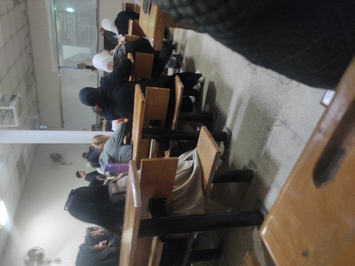 - "This image captures an interior view of a lecture hall or classroom in Rukn ad-Din Municipality, Syria, taken from a slightly elevated position within a row of student desks, looking towards the front of the room" by FM-oaYm93, licensed under CC BY 4.0