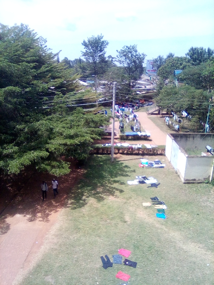 This image captures an outdoor scene in Bondo, Kenya, viewed from an elevated perspective under clear daylight conditions