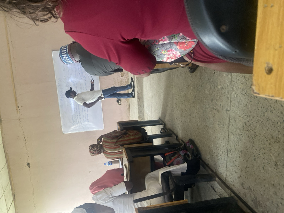 The image depicts an indoor classroom or lecture hall scene in Rafin Pa, Nigeria