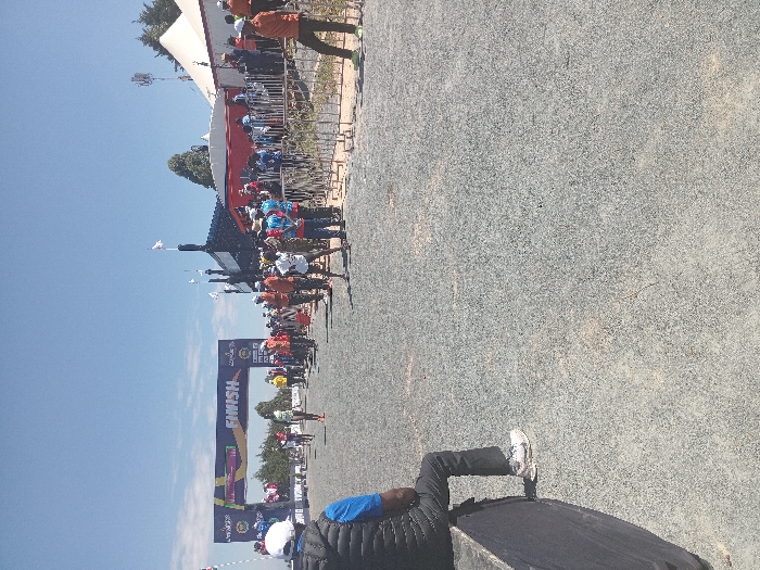 The image displays an outdoor sporting event, a race, located in Ngenyilel ward, Kenya
