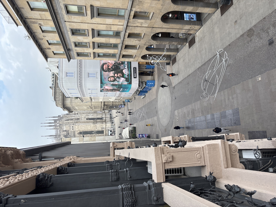 - "An elevated photograph captures a pedestrian street in Milan, Italy, with the Duomo di Milano prominently visible in the background under an overcast sky" by FM-pgYyR2, licensed under CC BY 4.0