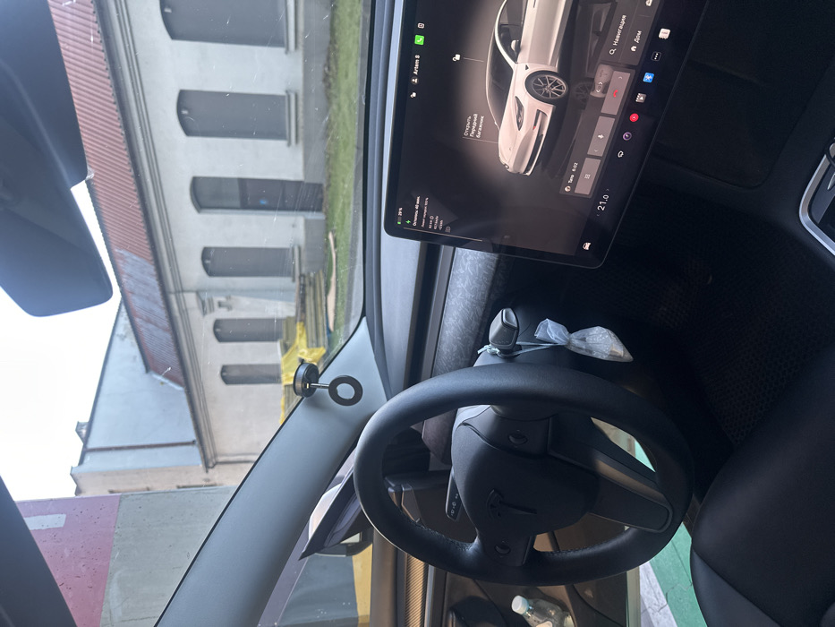- "The scene depicts the interior of a stationary Tesla vehicle, viewed through the windshield, with an exterior environment visible beyond" by FM-Qm3Z63, licensed under CC BY 4.0