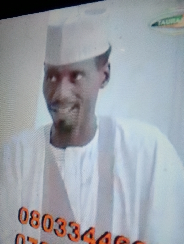 A man with dark skin wears a white cap and gown. He has a thin beard and is smiling slightly. Text in orange is overlaid on the image, including a phone number. The background appears to be a white wall or screen with the word "TAURA" visible in the upper right corner.
