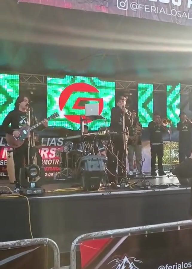 A video shows a band performing on a stage during the “Feria Los Altos” event