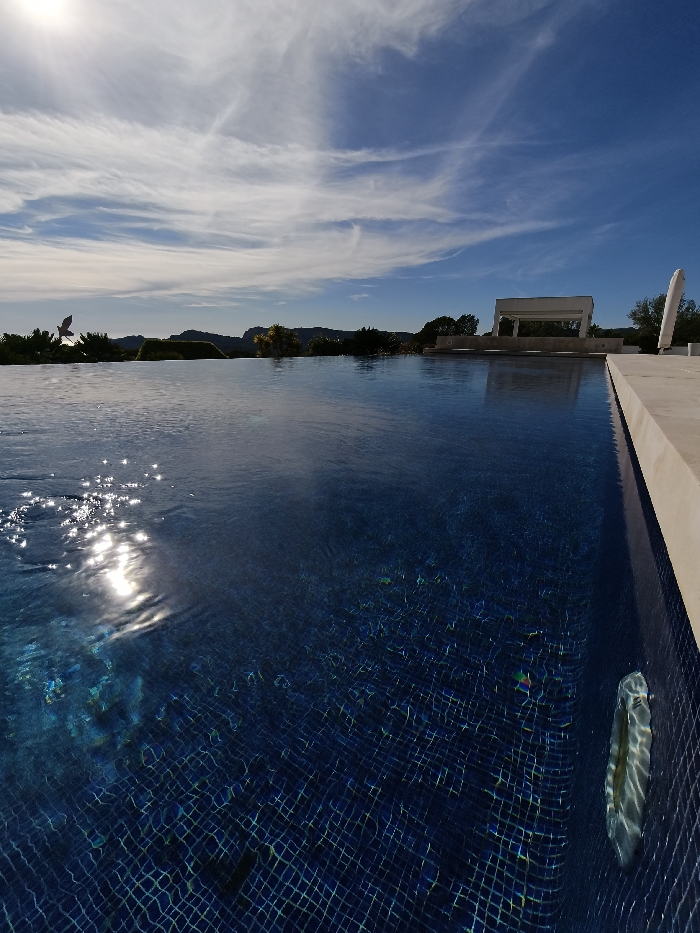 - "This image depicts an infinity pool situated in Calvià, Spain, under a clear blue sky with scattered white clouds" by FM-SZfHJ3, licensed under CC BY 4.0