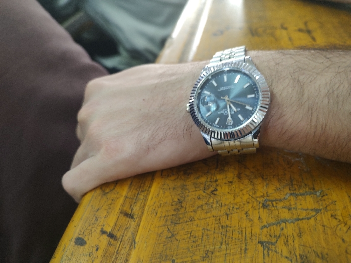 - "The image presents a close-up view of a person's left forearm and hand, resting on a textured, yellow-orange wooden surface" by FM-uC8RX2, licensed under CC BY 4.0
