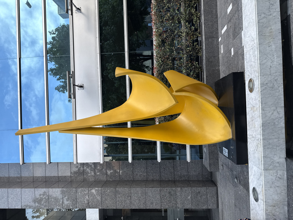 - "A yellow, abstract sculpture stands outside a building" by FM-rSR2K3, licensed under CC BY 4.0